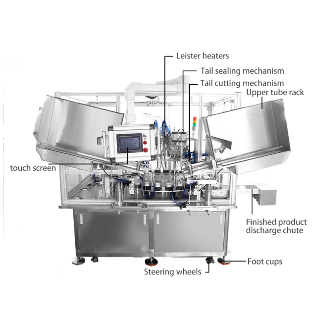 Plastic tube filling machine technology significantly reduces operational expenses through multiple cost-saving mechanisms. The instant heating system uses Swiss LEISTER heaters that heat tube inner walls rapidly without damaging outer surfaces, creating stable and attractive seals while minimizing energy consumption. Automated tube loading onto turntable molds eliminates manual handling, reducing labor costs and human error. The centralized waste disposal system with air hole design collects tail-cutting waste efficiently, maintaining clean working environments and reducing cleanup time. Double-sided printing capabilities, combined with advanced plug-in text structures, offer seamless customization options, allowing users to make changes quickly and easily without experiencing extended downtime. This ensures a smoother workflow and greater adaptability for various printing needs. Additionally, the integral lifting regulation system, featuring a dual-scale design, provides highly precise height adjustments. This not only improves work efficiency but also significantly reduces setup time when transitioning between different tube sizes, making it ideal for high-demand operations or environments requiring frequent adjustments.